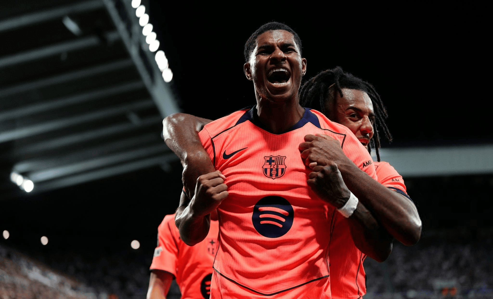 诺坎普新王登基夜! 英格兰妖锋拉什福德用两记雷霆万钧的破门,为巴萨的欧冠征程炸开完美开局!尽管核心亚马尔高挂免战牌,但弗里克的球队在圣詹姆斯公园五万五千名球迷的声浪中,硬生生撕开纽卡斯尔的钢铁防线。这场2-1的客场胜利,直接向全欧洲甩出一张烫金名片:今年的欧冠王座,巴萨来真的!
